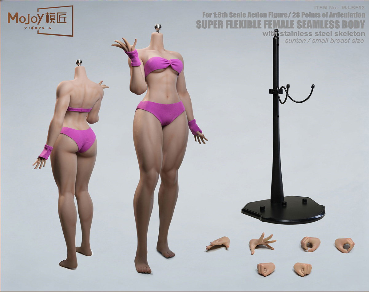 Mojoy Studio 1:6 Fighting Style Female Body without Head, Fixed Feet, Small Bust, Tan Skin [MJ-BF02]